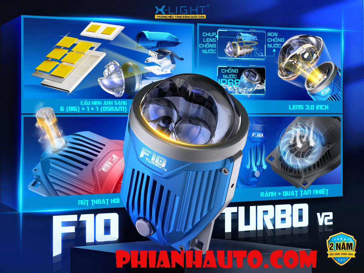 - Dòng đèn bi gầm F10 Turbo của X-Light đã chính thức tái xuất với diện mạo và công nghệ mới – Bi gầm F10 Turbo thế hệ thứ 2. Sản phẩm không chỉ đơn thuần là một bản nâng cấp, mà còn là hoàn thiện của một “huyền thoại”, nơi ánh sáng mạnh hơn, tinh tế hơn và bền bỉ hơn được kết hợp trong một thiết kế đậm dấu ấn của X-Light.