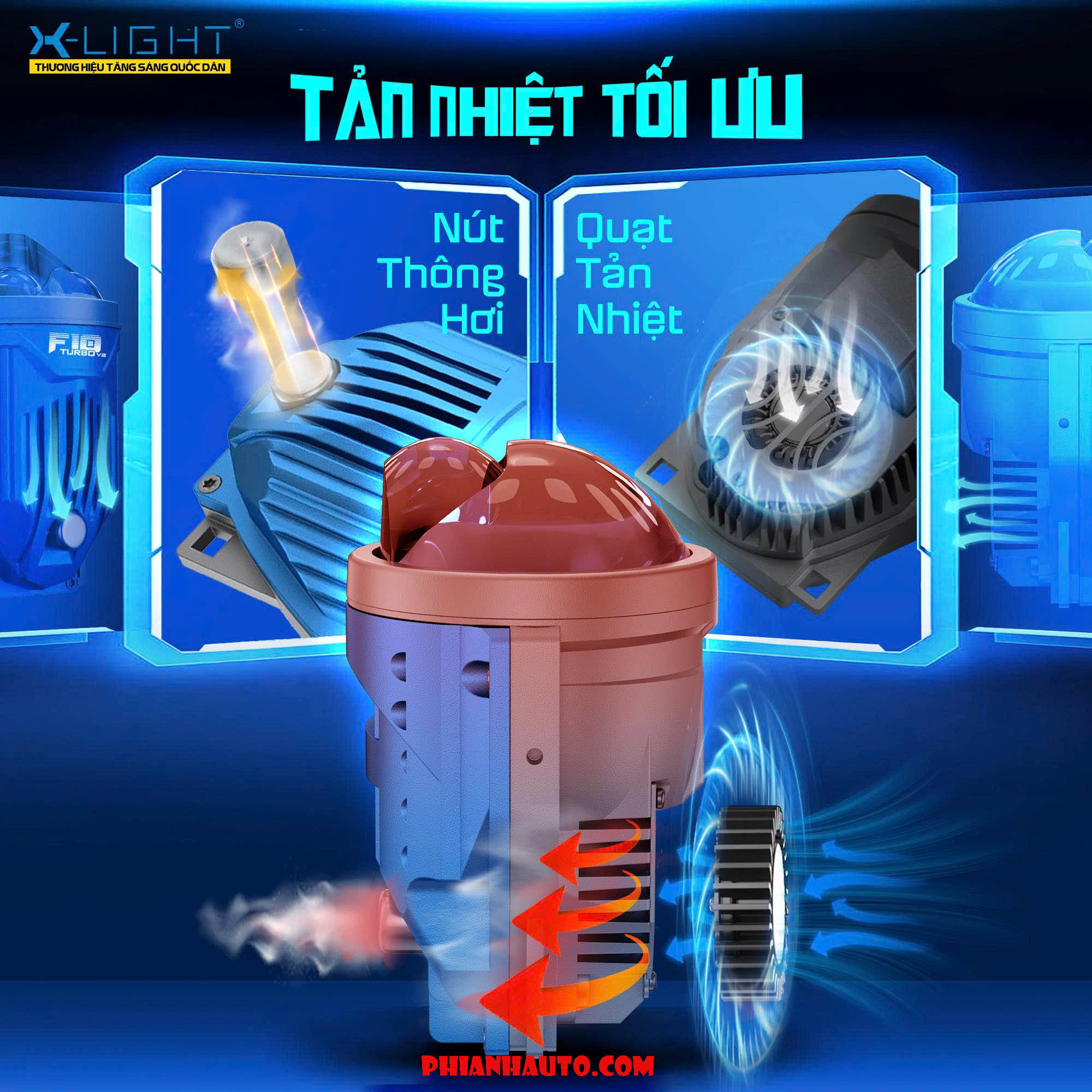 2. Công nghệ đèn bi gầm X-Light F10 Turbo V2